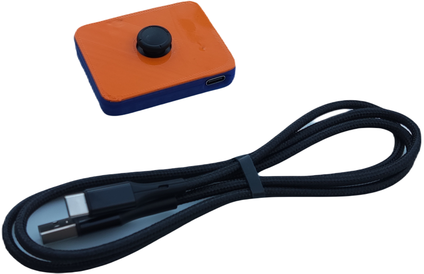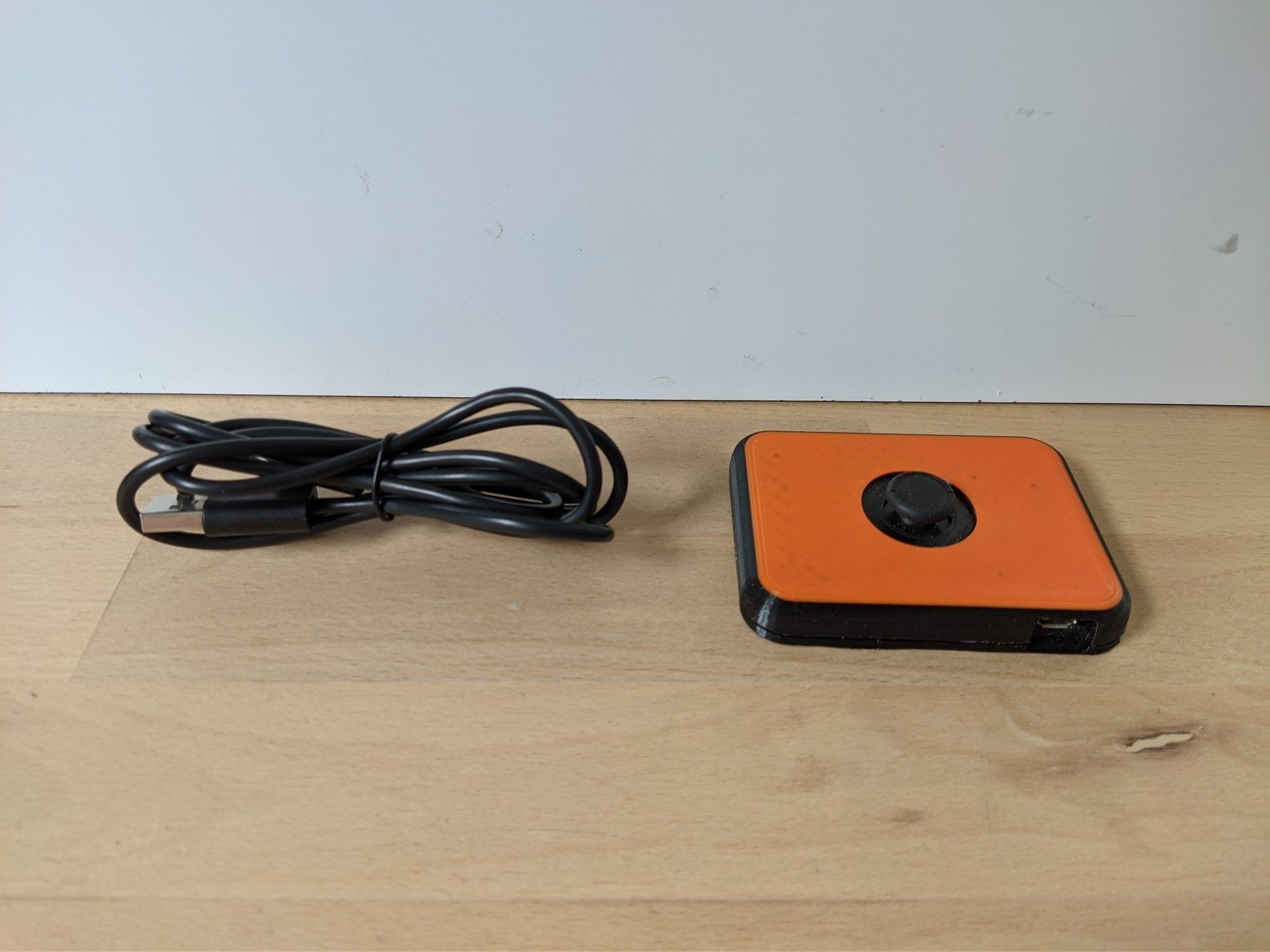 Thanks to its smaller size, the mini joystick is very easy to use with a single finger when the hands are flat on the table or a tray. This mini joystick can be connected via USB and has the addition that the joystick itself is also a button. Pressing the button takes some force.